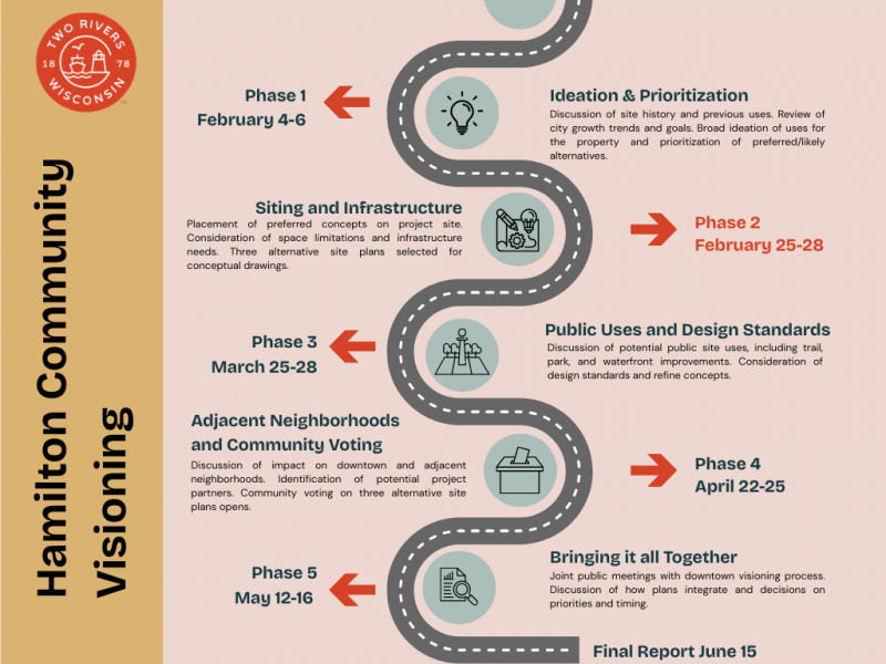 This page will track the progress of the Hamilton Community Visioning Process. The Hamilton site can accommodate several potential uses, equaled by community preferences for new industrial, residential, and retail development. This process will leverage robust community input to come to a shared vision of feasible and sustainable development that will be used to seek external funding and generate developer interest.
